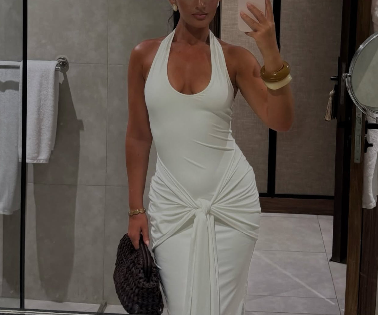 - Plunge neckline, halter neck tie & internal gripper tape on neckline